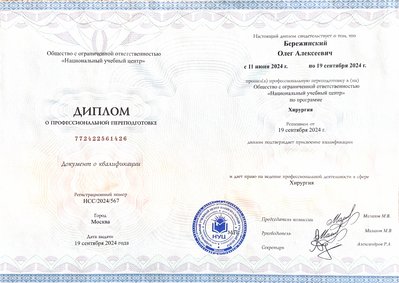 - 2024 г. – Специальность «Хирургия», «Национальный учебный центр»