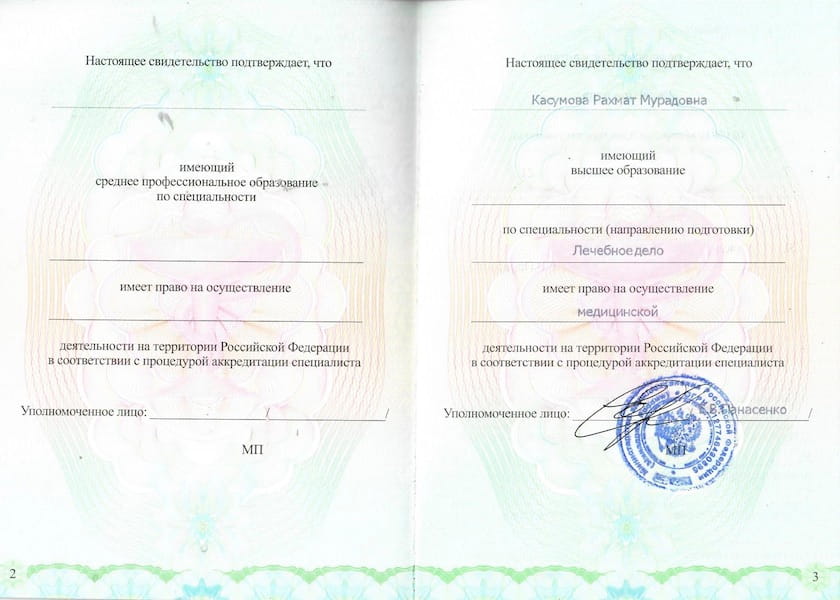 - 2021 г. – Дагестанский государственный медицинский университет, лечебный факультет, г. Махачкала