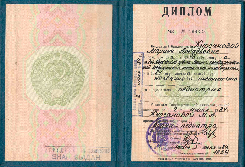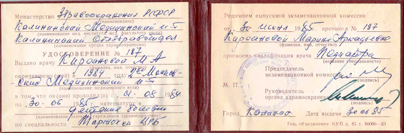 - 1984 г. – 2-ой МОЛГМИ им. Н.И. Пирогова