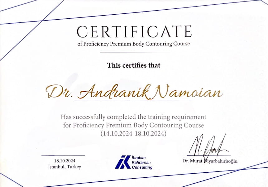 - 2024 г. – Обучение по программе Proficiency Premium Body Contouring Course, Стамбул (Турция)