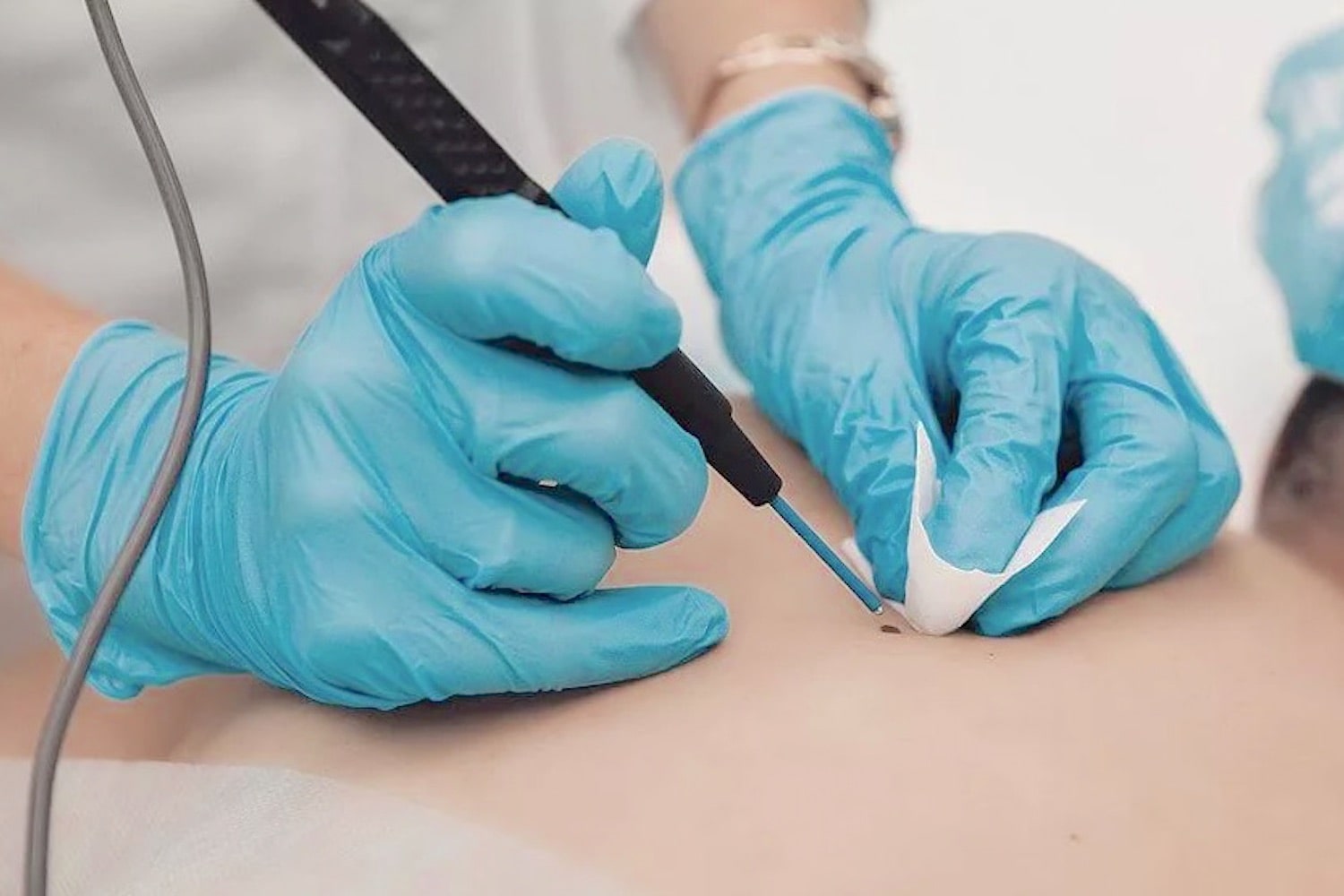 От 10 до 25 минут, в зависимости от локализации и сложности доступа. Вся цепочка — от приема до выхода из клиники — занимает не более часа.