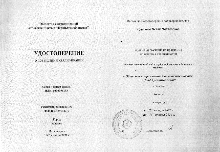 - 2026 г. – «Основы заболеваний поджелудочной железы и билиарного тракта», ООО «ПрофАудитКонсалт», г.Москва